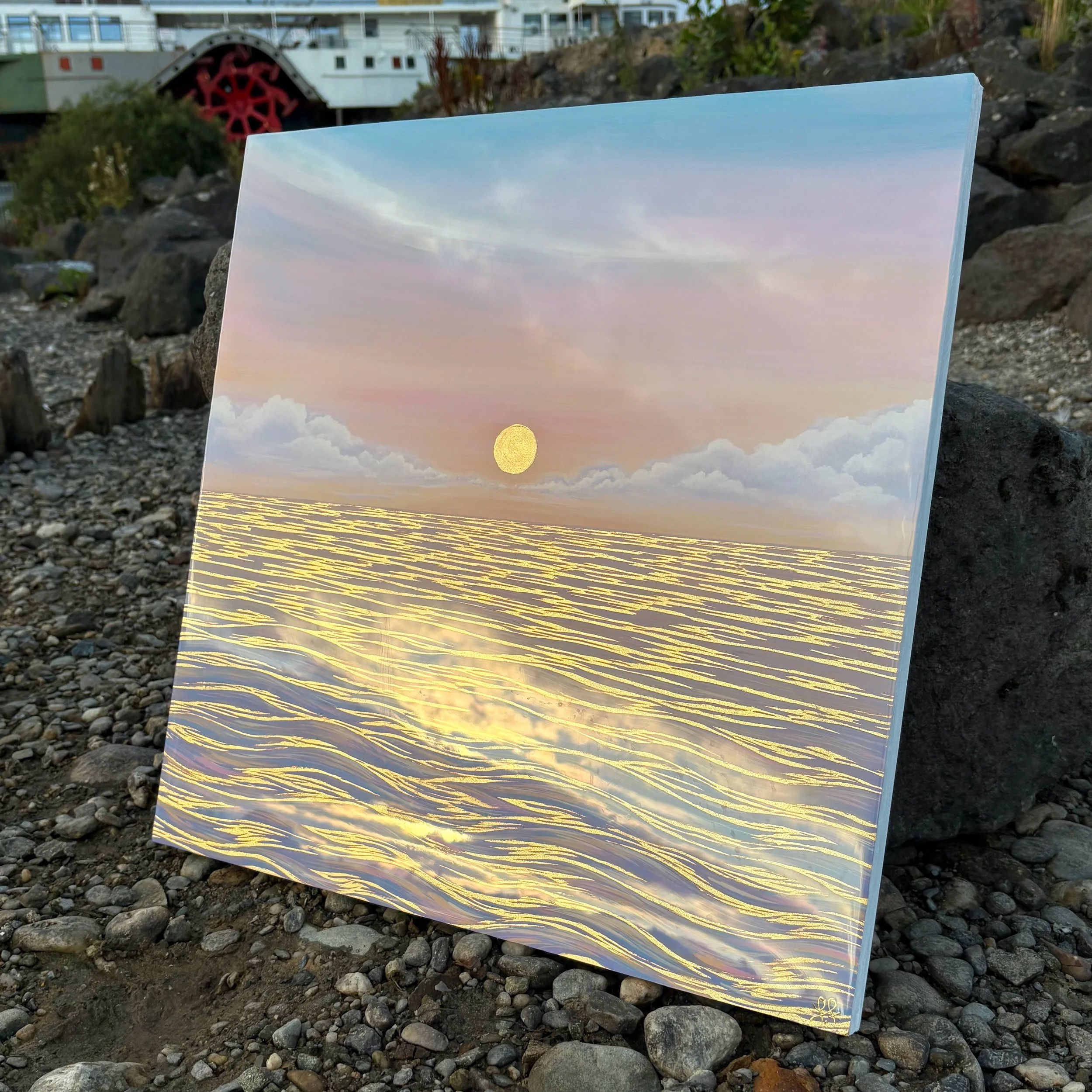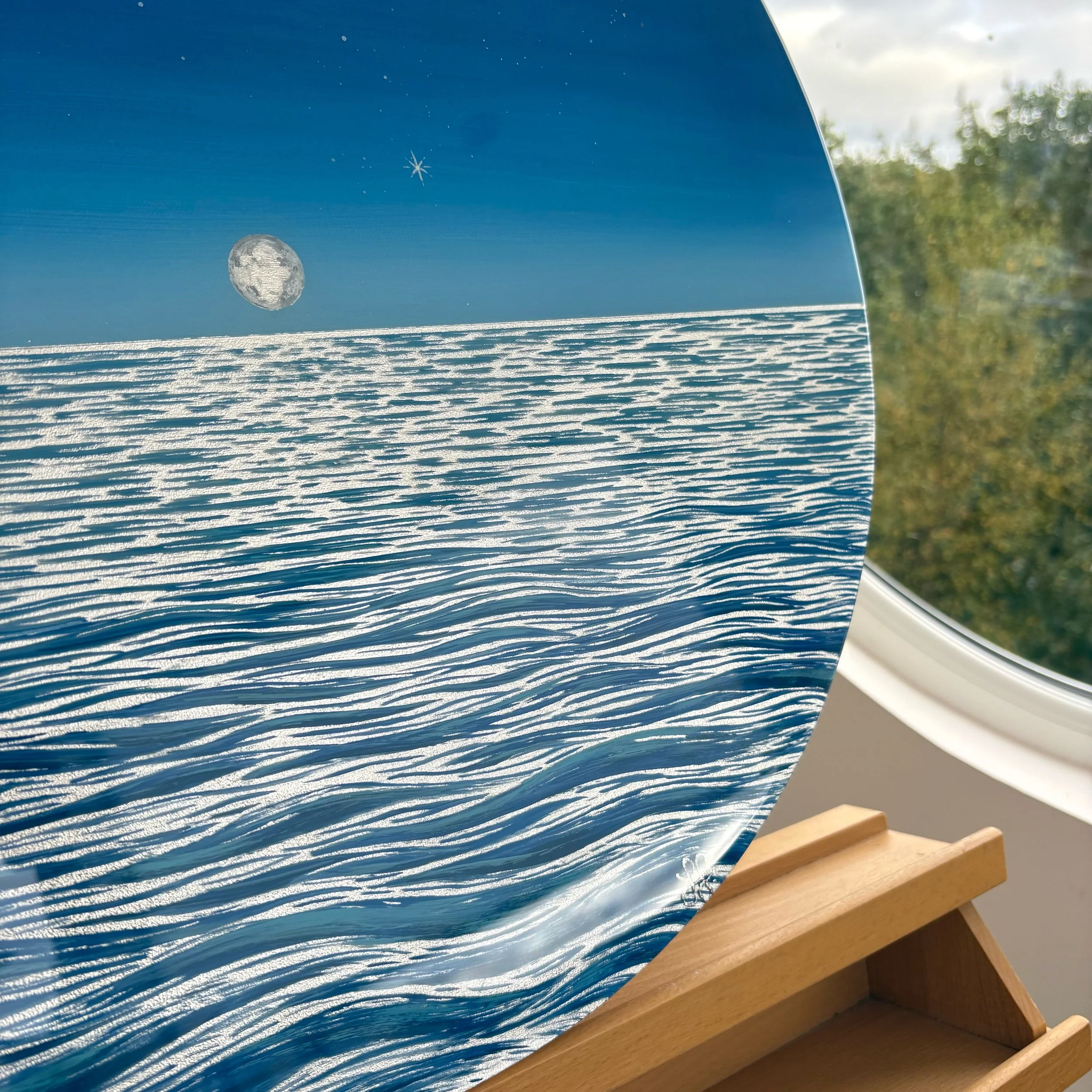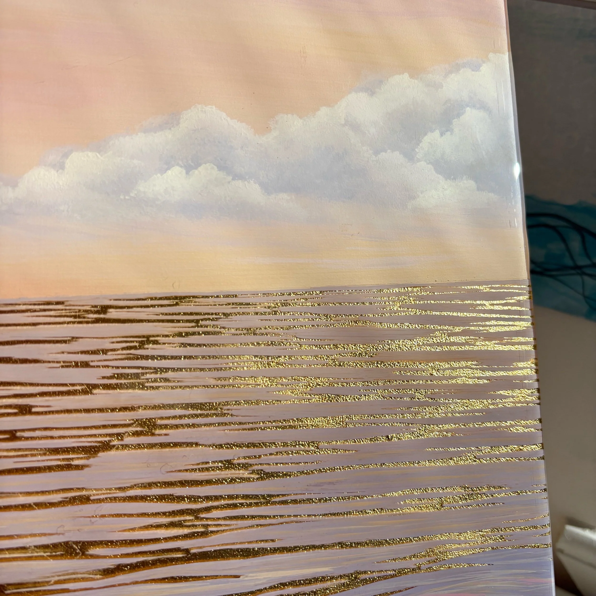 For me, glimmers often happen when I watch sunlight dancing on water - those sparkling, shifting reflections that feel both calming and uplifting. My paintings are glimmers in the literal sense too: they capture those moments when sunlight really does glimmer on the water’s surface.