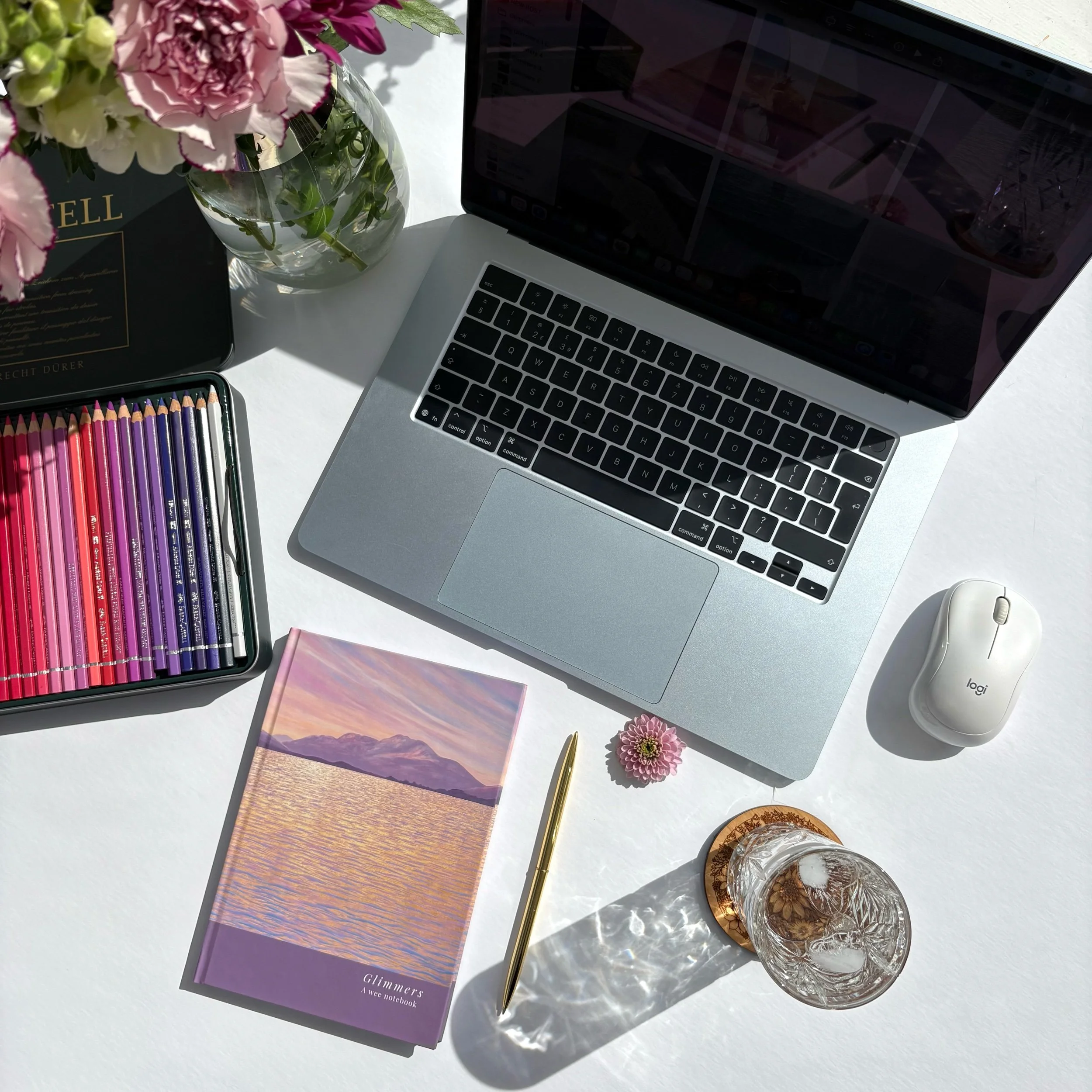 Bring Glimmers into your everyday with this A5 hardback notebook collection. Each premium notebook features one of my Glimmers paintings on the cover - uplifting artworks inspired by light, water, and the quiet joy found in everyday moments.